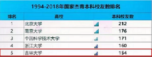 2018年10月,国家自然科学基金委公布了2018年全国国家杰出青年基金获得者名单,其中,吉林大学共有154名校友获此基金资助,排名全国第5位。