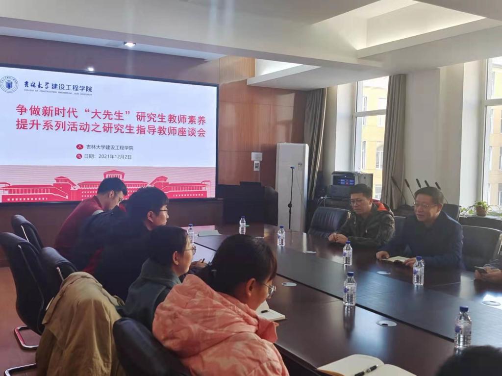 为贯彻落实习近平总书记对研究生教育工作的重要指示和全国研究生教育会议精神,进一步提高研究生教师队伍素质,按照吉林大学研究生院的总体工作部署,yl23455永利集团于2021年12月2日下午在水工楼319会议室举办争做新时代“大先生”研究生教师素养提升系列活动——研究生指导教师座谈会。