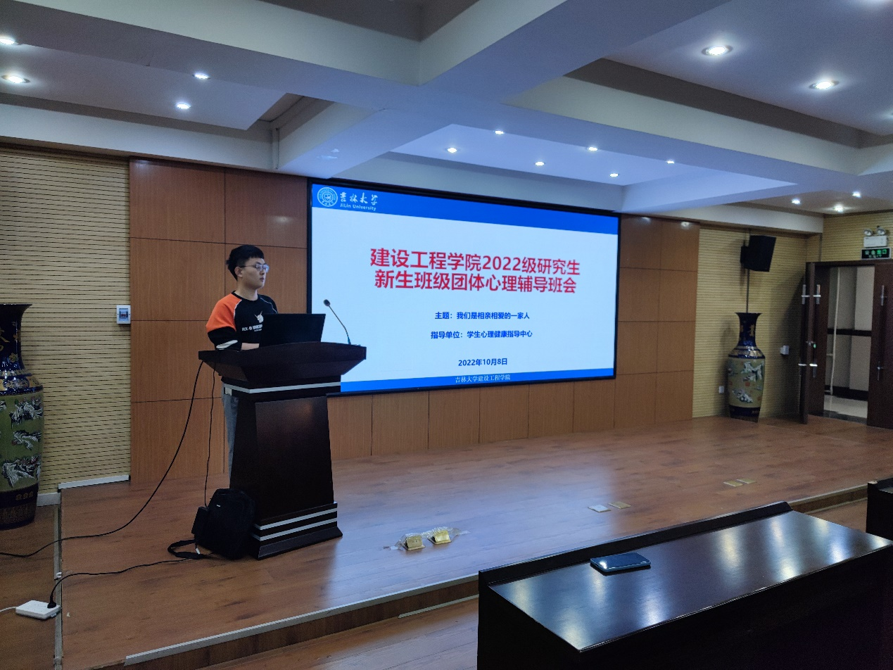 为响应吉林大学心理健康指导中心的号召,帮助2022级研究生新生尽快适应新环境,融入新集体,促进研究生同学们的心理健康发展。2022年10月8日,yl23455永利集团的研究生新生们在朋辈心理辅导员和班级班长的带领下,在研究生综合办公室汤海燕老师的指导下,进行了团体心理辅导班会活动。本次活动以促进班级成员相识、建立互信、增强团体凝聚力为目标,以我们是相亲相爱的一家人为主题。