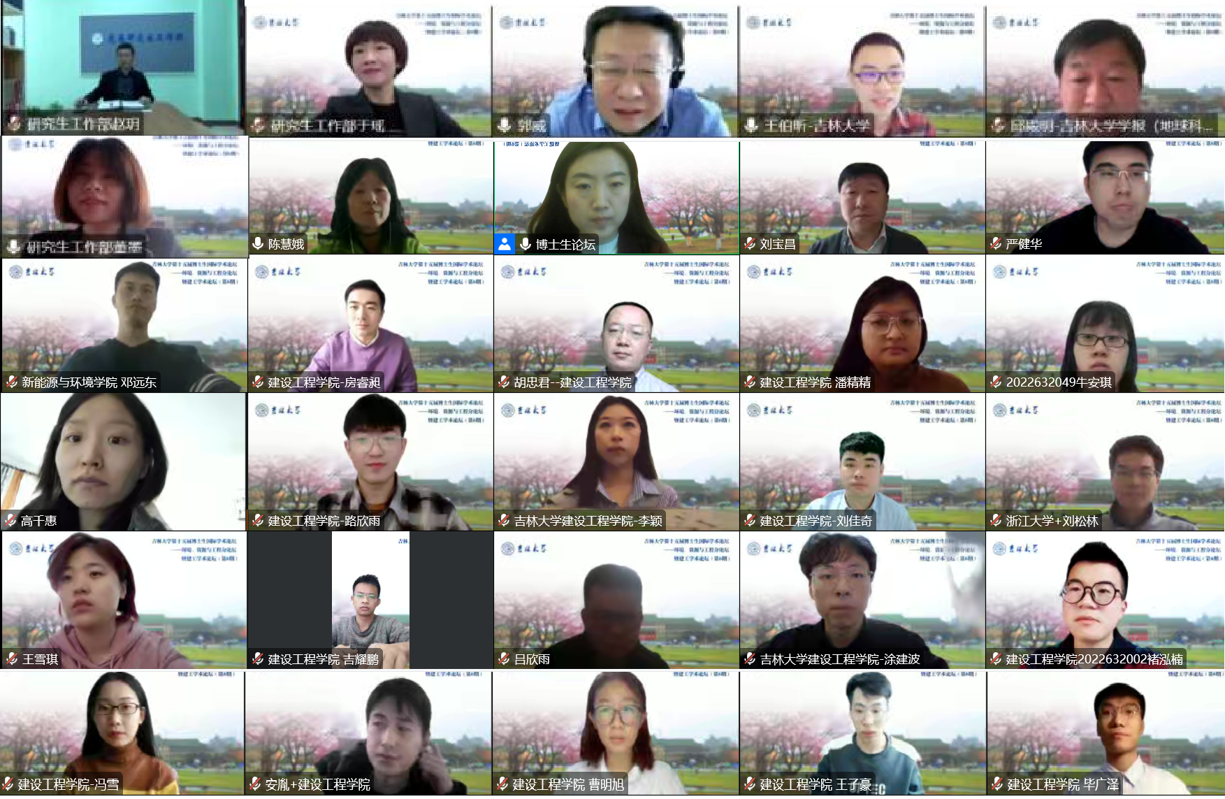 自11月1日分论坛发出举办和征文通知以来,受到了国内校内相关学科博士研究生同学的广泛关注。受近期长春突如其来的疫情影响,本次分论坛遗憾地以线上形式举办,并大幅压缩会期和参与人数。最终经分论坛学术委员会的评议和筛选,共有来自浙江大学、西安建筑科技大学、吉林大学等高校的36名博士研究生获得论坛报告的机会,有更多的博士生同学将在线上收听收看他们的精彩学术报告。
