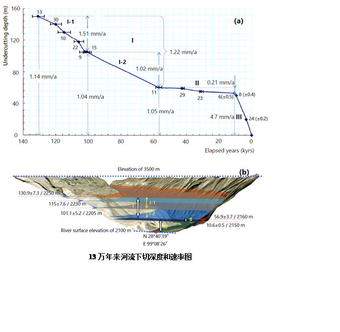 研究结果表明13万年以来印度夏季风强度至少呈现了四个明显的周期性变化,且该周期性与地球轨道倾角周期一致并滞后于海平面变化。此外,研究发现滑坡发生频率与剧烈气候变化呈正相关,尤其是极端环境变化会导致滑坡事件的显著增加;滑坡堆积物河流下切速度的高低预示着印度夏季风强度的强弱,故古水文(河流下切历史)可以作为印度夏季风强度重建的一个新的代用指标。