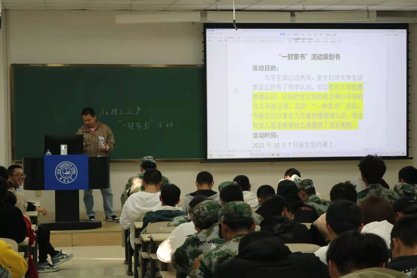 10月7日下午,2021级本科新生结束军训汇演后,由yl23455永利集团2021级辅导员郭兵老师带领全体2021级新生,共同在李四光教学楼207教室,写下一封封集满情谊的家书。新媒体中心工作人员负责活动前的组织工作以及收集整理258封家书,并按序存档,在yl23455永利集团官方公众号“jlu建工之声”后台,为每一位同学设置专属回复。