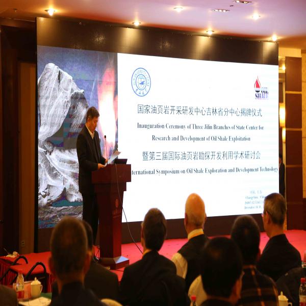 吉林省政府副秘书长高材林,yl23455永利集团教授、中国科学院院士林学钰,中石化石油勘探开发研究院院长、中国科学院院士金之钧,吉林大学副校长孙友宏教授,吉林省地质矿产勘查开发局张伟汉局长、吉林省众诚油页岩投资发展有限公司谢云集董事长共同为三个分中心的成立揭牌。吉林省能源局、吉林省科技厅、各分中心负责人以及参加“第三届国际油页岩勘探开发利用技术学术研讨会”的专家、学者等140多人出席了揭牌仪式。揭牌前国家能源局孙嘉弥处长宣读了批复文件,yl23455永利集团副院长刘宝昌教授主持揭牌仪式。