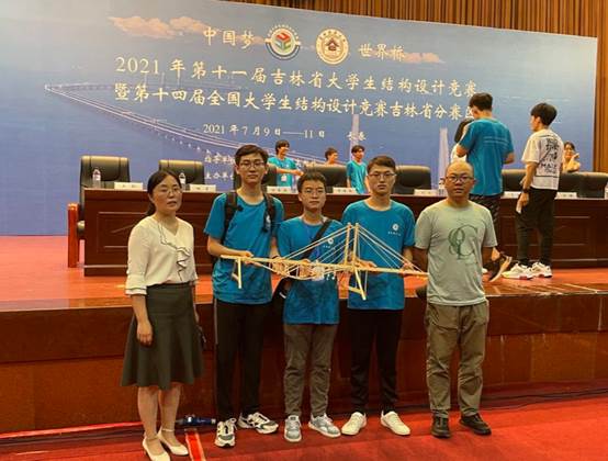2021年7月9日至11日,第十四届全国大学生结构设计竞赛吉林省分赛区在吉林建筑大学举行,来自吉林大学、吉林建筑大学、延边大学等13所学校的26支代表队参加了本次大赛。吉林大学两支代表队在朱珊老师和郑少鹏老师的指导下,通过近三个月的努力,不断尝试、改进、优化、创新,确定了本届参赛作品的最终方案。在比赛期间,经过三天的激烈角逐,最终顺利完成三级加载,吉林大学“抗压队”获得大赛特等奖,吉林大学“砼话队”获得大赛一等奖。