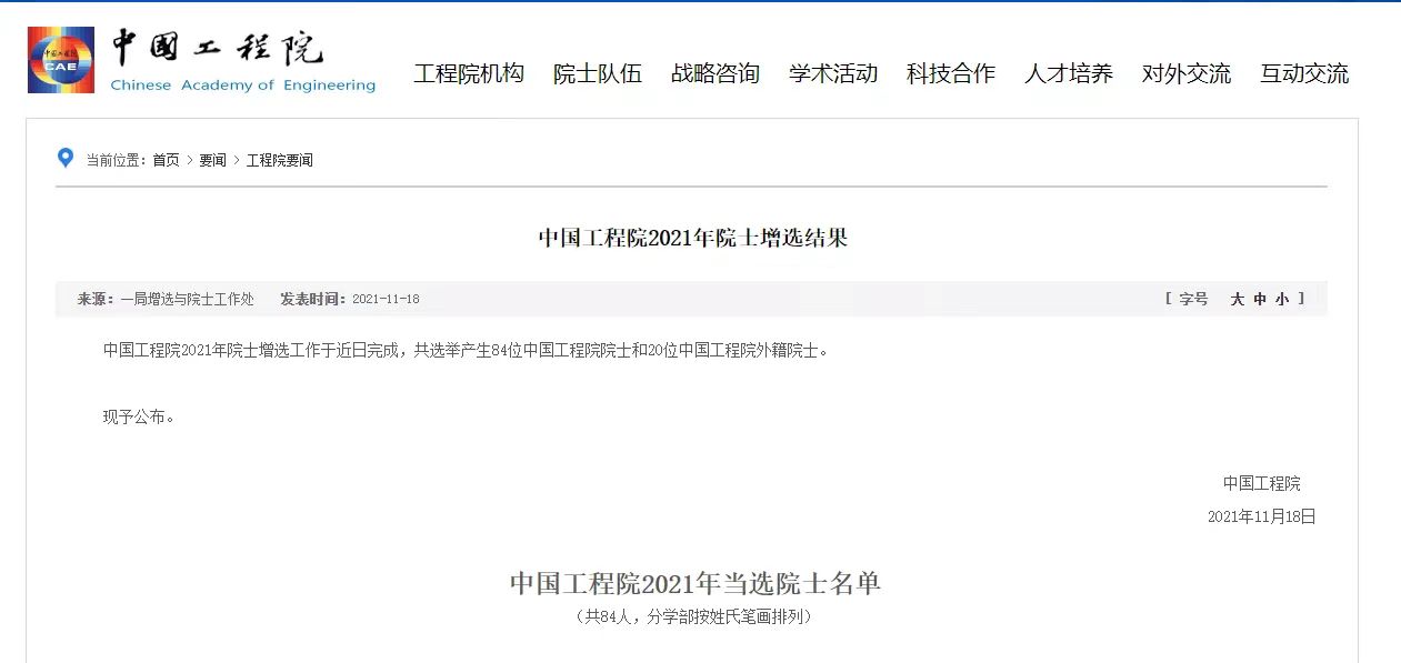 2021年中国工程院选举产生了84位中国工程院院士。其中,机械与运载工程学部11人,信息与电子工程学部10人,化工、冶金与材料工程学部8人,能源与矿业工程学部9人,土木、水利与建筑工程学部10人,环境与轻纺工程学部8人,农业学部10人,医药卫生学部11人,工程管理学部7人。