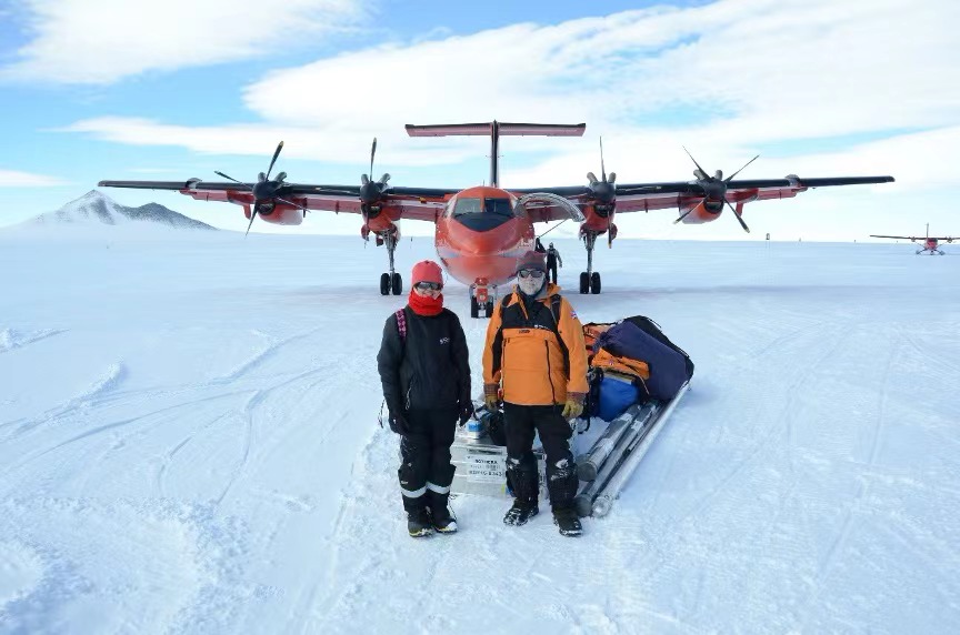 洪嘉琳(左)和R. Mulvaney(右)在南极英国Skyblu站