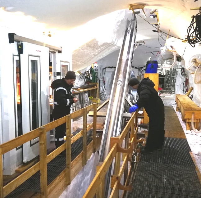 2015-2016年,博士研究生洪嘉琳前往英国南极调查局访问交流,并在此期间参加了英国南极科学考察,与英国南极调查局学术带头人R.Mulvaney博士在南极Sky Blu站测试了快速钻进同位素钻具(Rapid Access Isotope Drill,RAID)。