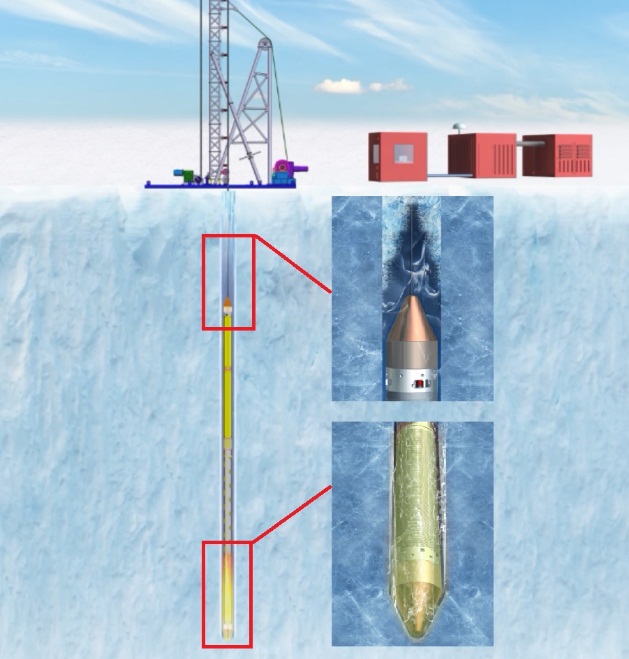 南极冰下湖长期被冰盖所覆盖,具有独特的高压、低温、低营养和黑暗环境条件,可能会提供独一无二的生物进化、地球气候变化以及南极冰盖的演变信息。南极冰下湖科学钻探是获取冰下湖实物样品的唯一手段,所获科学样品可以用以分析极地冰下特殊环境条件下冰下湖体系的理化参数和水质特征,进而揭示冰下湖的形成机理、演化规律以及其对南极冰盖物质平衡的影响机制。为此,中国工程院院士、吉林大学原副校长、中国地质大学(北京)校长孙友宏教授和吉林大学国家海外高层次特聘专家Pavel Talalay教授带领极地研究团队牵头承担了国家重点研发计划课题-“南极冰下湖无污染钻进采样与观测系统”。课题组变革性提出采用底部钻具热融钻进、顶部钻孔冻结闭合的热融钻探方式进行冰下湖无污染探测取样。针对南极冰下湖钻探过程中钻深大、压力高、温度低和作业时间短等特点进行联合技术攻关,突破了小直径高强度高压供电柔性电缆技术、大长径比内嵌式绞车及高精度自动送钻技术、冰层热融钻进梯度加热技术、耐高压电磁阀技术、远程数据传输与控制和不间断电力自动供给等关键技术,成功研发了可对南极冰下湖进行无污染钻进采样与观测的可回收式冰下湖热融探测器,解决了南极冰下湖无污染钻进采样和观测技术难题,填补了我国南极冰下湖探测技术与装备的空白。