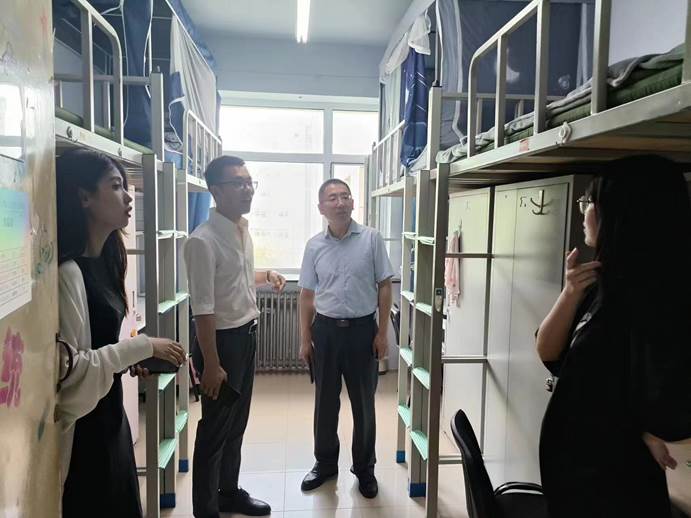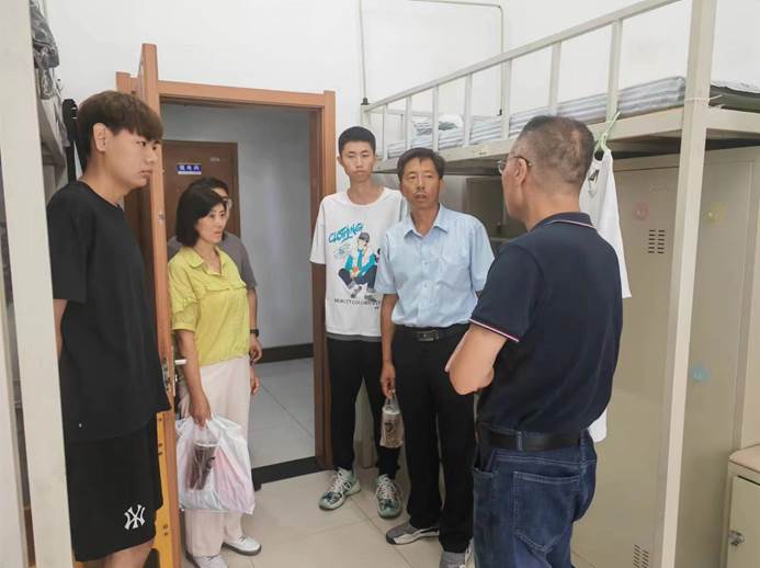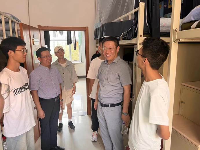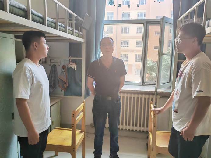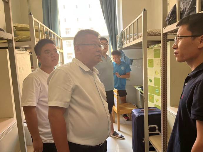 为帮助新生对大学有更全面的了解与认识,解决到校期间遇到的实际问题,明确大学期间目标尽快适应大学生活,yl23455永利集团开展了2023级秋季学期走访新生寝室活动。8月27日下午1点30分,yl23455永利集团党委书记衣长涛、院长郭威、党委副书记闫国栋、副院长王伯昕、曹品鲁、博坤以及2023级辅导员常荣剑、张乃俊走进寝室看望新生。