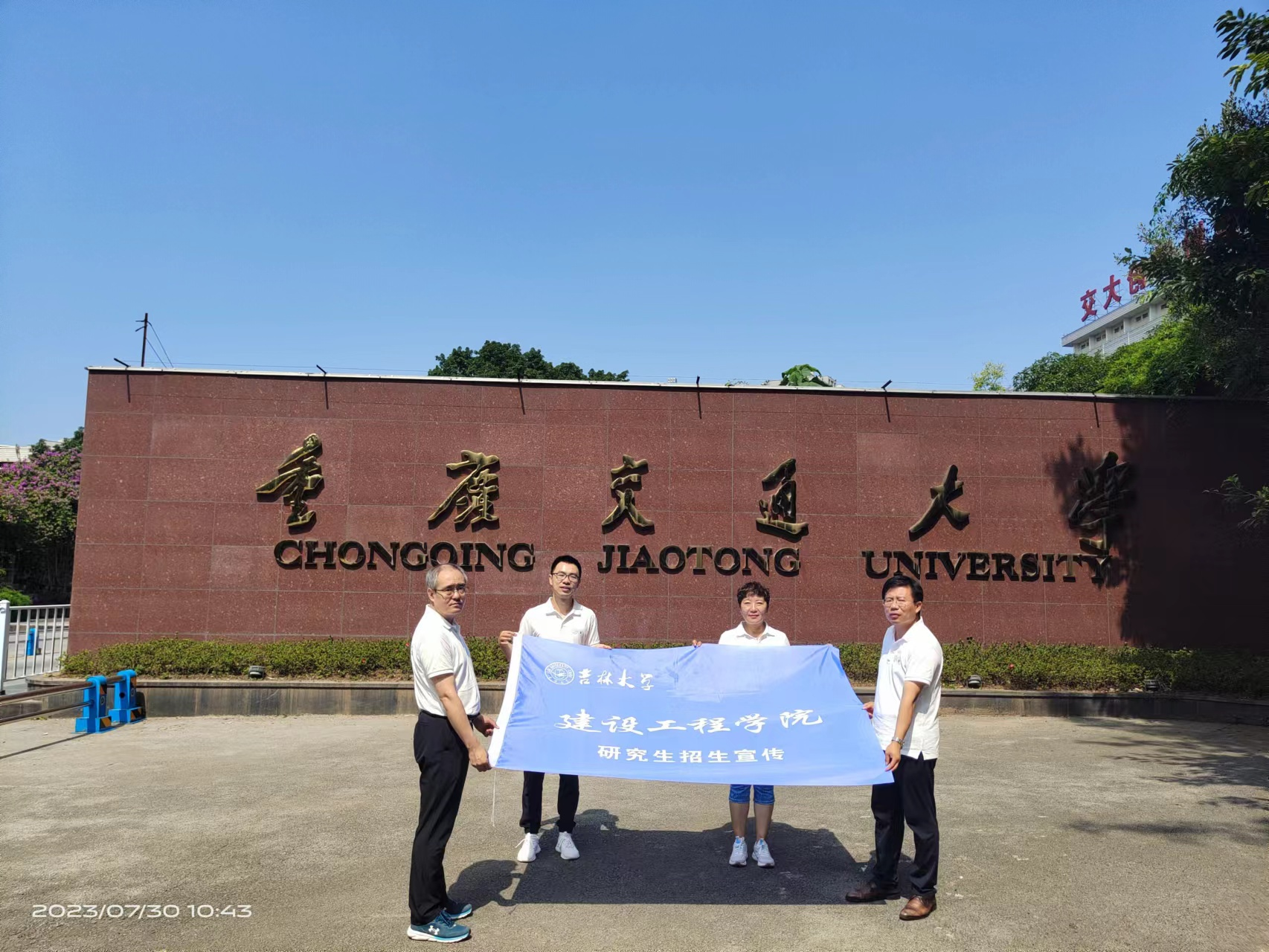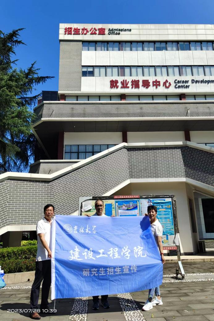 为进一步优化yl23455永利集团研究生生源结构,提升研究生生源质量,吸引更多优秀学子来到我院深造,按照《吉林大学加强研究生招生宣传工作实施方案》要求,学院领导高度重视,成立研究生招生专项工作小组,组织优秀专业教师、研究生管理人员深入参与,切实做好2023年度研究生招生宣传工作。在学院党委书记衣长涛、院长郭威的关心与支持下,20237月26-83日,由学院副院长王伯昕率队,学院副院长张文、研究生综合办公室主任王慧娣、建筑系系主任朱珊、勘查工程系副主任赵研、地下工程系副主任沈世伟一行先后前往四川、重庆、贵州开展2023年度研究生招生宣传工作。