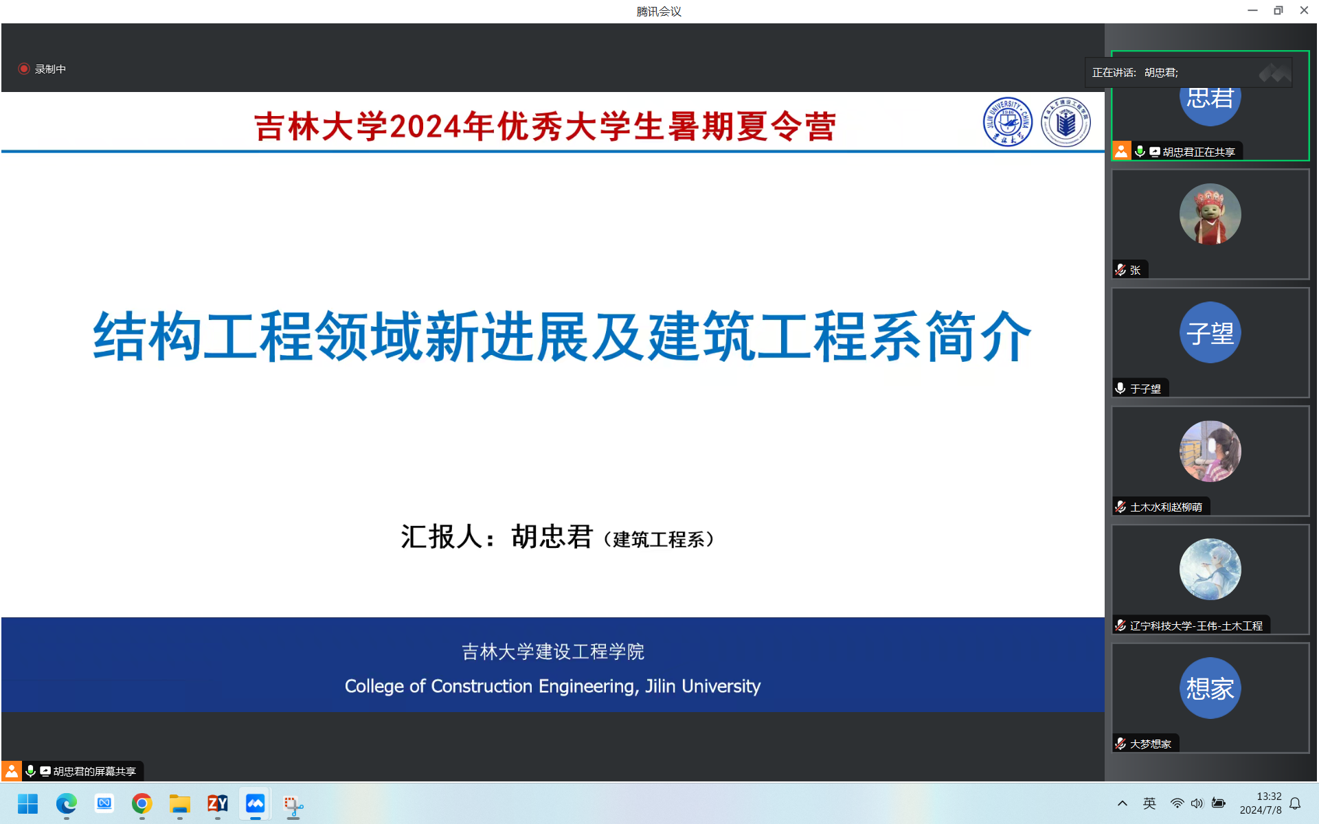 7月8日下午,学院举办了土木工程学术论坛和地质工程学术论坛,我院土木工程专业、地质工程专业八位专家教授分别为营员同学们做了精彩的学术报告,与营员们在线上展开热烈讨论,向参加夏令营的优秀学子们充分展现了学院各学科方向的优势和实力。