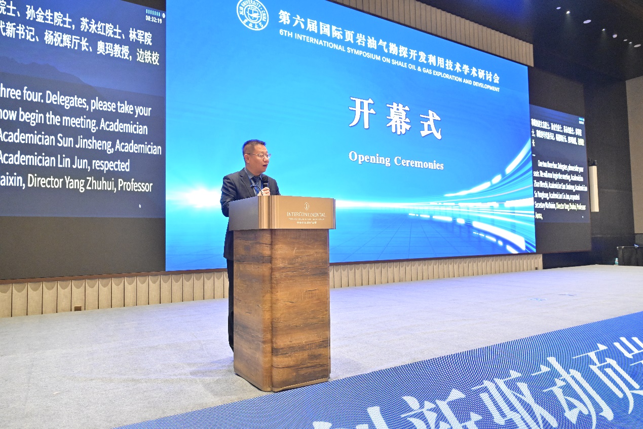 边铁在开幕式致辞中,代表吉林大学对参会院士及专家同仁表示热烈欢迎,向支持学校发展与页岩油气事业的各界朋友致以诚挚感谢。他表示,近年来,吉林大学地学学科服务国家能源战略成效显著,在页岩油气领域已形成平台建设、科研创新、人才合作、学科融合多维度发展优势。学校通过整合地学、工程、信息等多学科资源,构建了覆盖"储层预测-钻采工艺-原位转化-绿色开发"全链条的协同攻关能力,并在松辽盆地等重点区域取得了多项理论突破和技术创新。