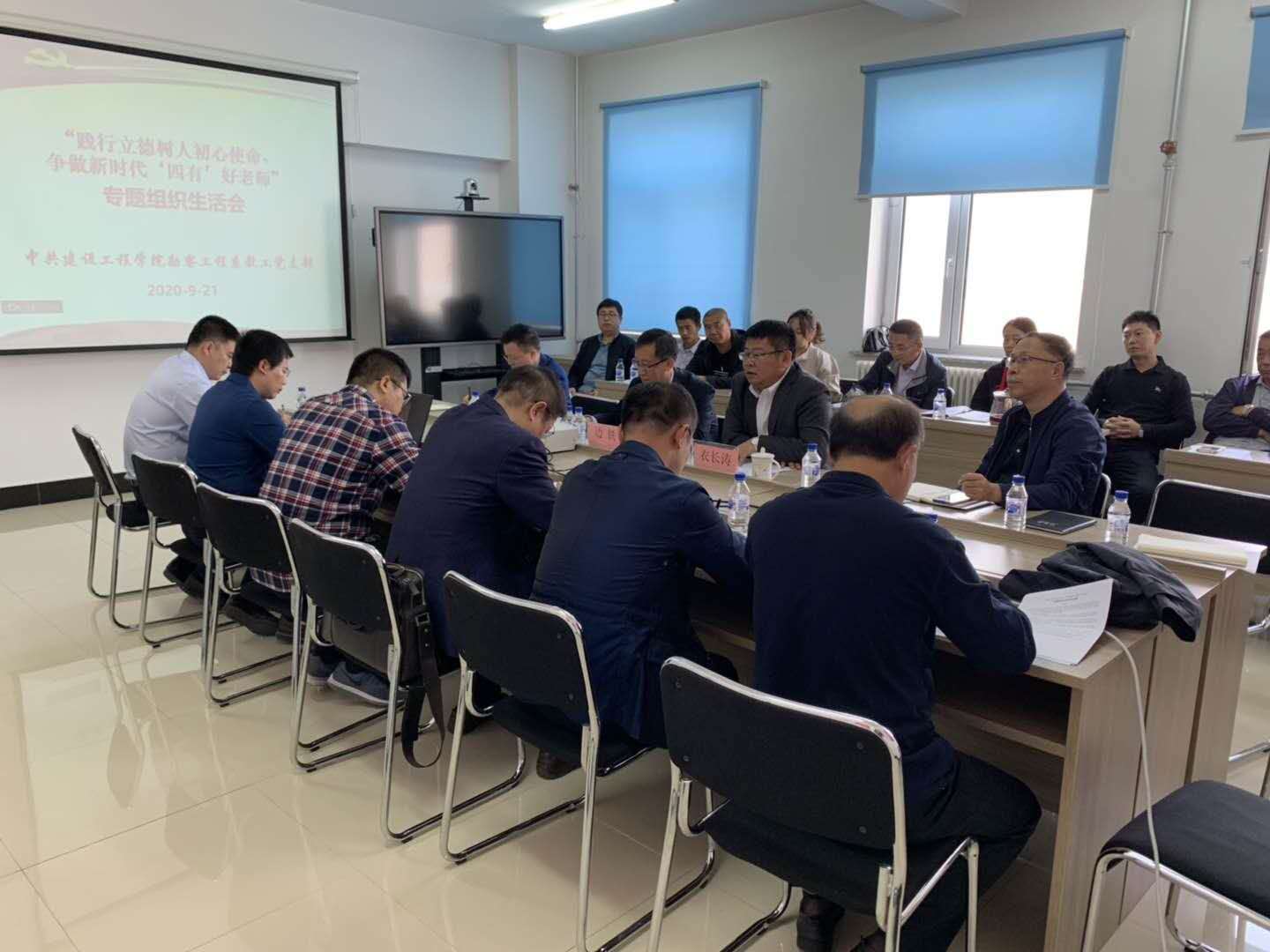 2020年9月21日,yl23455永利集团勘察工程系教工党支部组织召开了以“践行立德树人初心使命、争做‘四有’好老师”为主题的专题组织生活会。边铁副校长作为联系该支部的校领导参加此次专题组织生活会并点评,yl23455永利集团党委书记衣长涛参加会议。