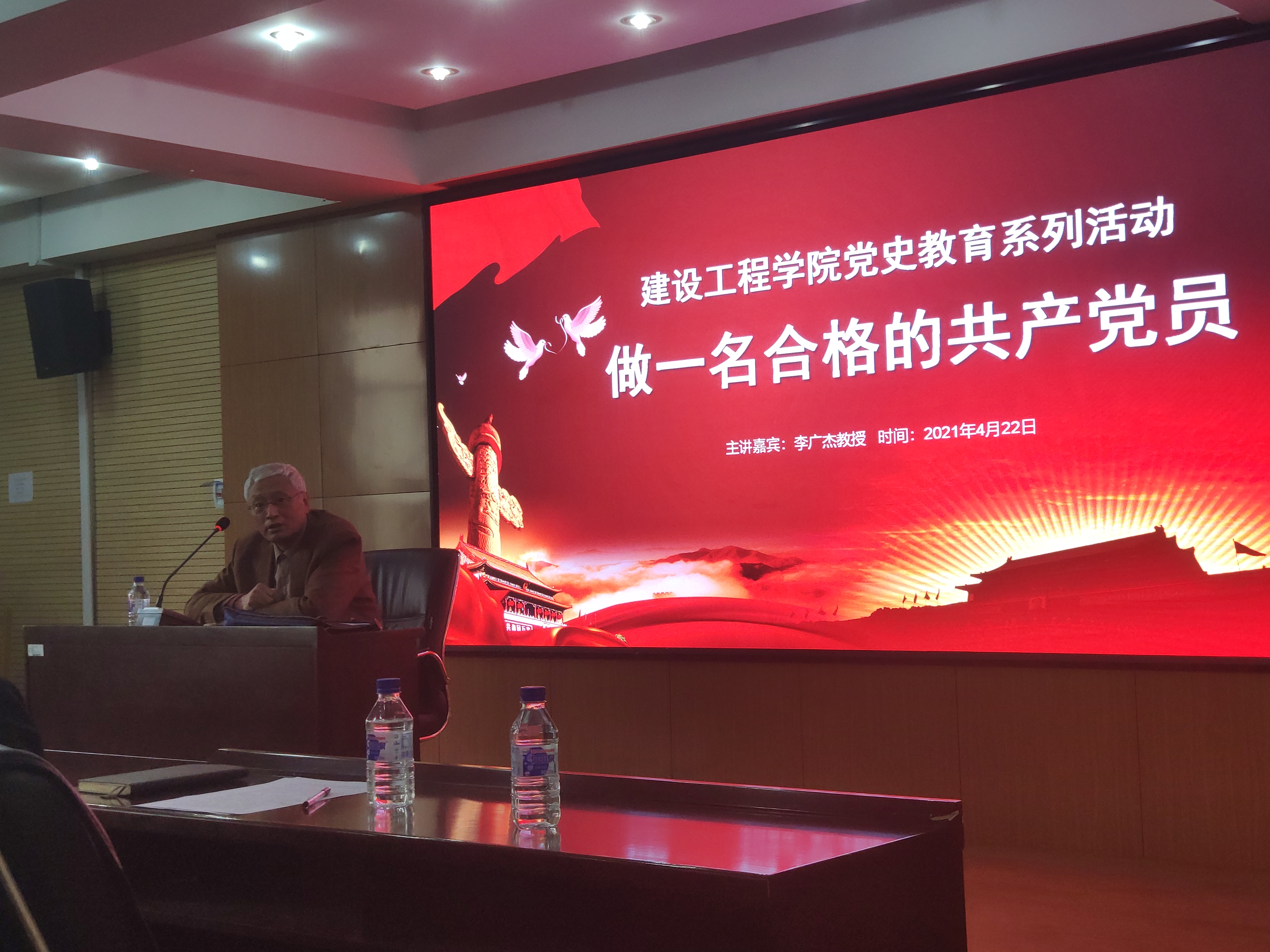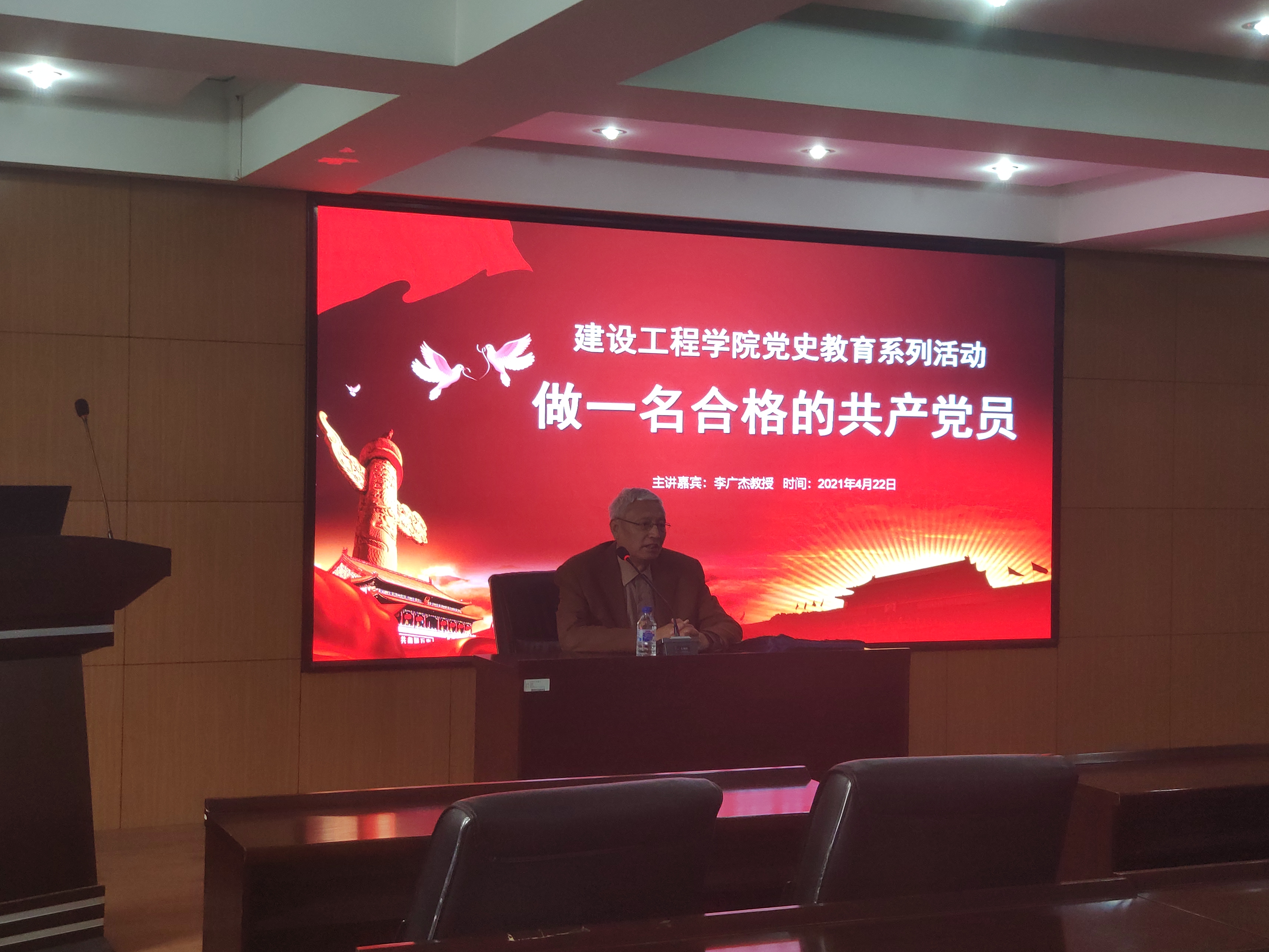为扎实推进党史学习教育工作,提升学生党员和入党积极分子的党性修养,引导建工学子把个人理想和党的伟大事业紧紧联系在一起,yl23455永利集团于423日下午1340分在水工楼325报告厅开展党史学习教育活动,邀请了退休教师李广杰教授,为本科生党员和入党积极分子讲授《做一名合格的共产党员》专题党课。