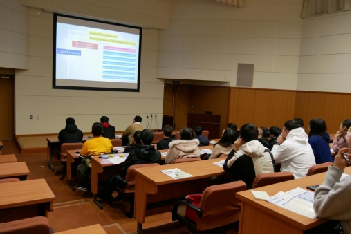 接下来,全体师生共同听取了杨克俭教授关于桥梁健康检测与监测的讲座,杨克俭教授是日本构造计划研究所(日本东京)高级研究员,日本土木学会桥梁检测委员会委员,桥梁解析技术委员会委员,主要研究抗震结构与性能,曾经参与上海环球金融中心抗震结构设计。在讲座中,杨教授结合自己丰硕的研究成果,用生动形象的语言向同学们介绍了结构健康监测系统的概念、基于光纤传感器代替应变片来检测桥梁及建筑的破损程度的理念和方法、以及外部框架与内部核心筒结合设计的外框内筒结构。同时他结合多个案例,不断启发同学们进行深入思考,不仅拓宽了同学们对学科知识的理解,更让大家感受到科研学术创新的力量。最后,杨教授与师生分享了他在日本学习、工作的感受,日本学者高度的责任感给他留下了深刻的印象。他告诉同学们日本是地质灾害频发的国家,十分注重抗震减灾的工作。作为设计师,工程师,日本同行认为自己承担着这座建筑的全部责任,就算是自然灾害使得房屋出现破损,也会感到无地自容。他鼓舞同学们夯实基础、增强责任感和使命感,为祖国建设事业贡献力量。讲座结束后,同学们和杨教授进行了积极的互动,针对讲座内容以及科研思路方法进行了更加深入的交流和探讨。