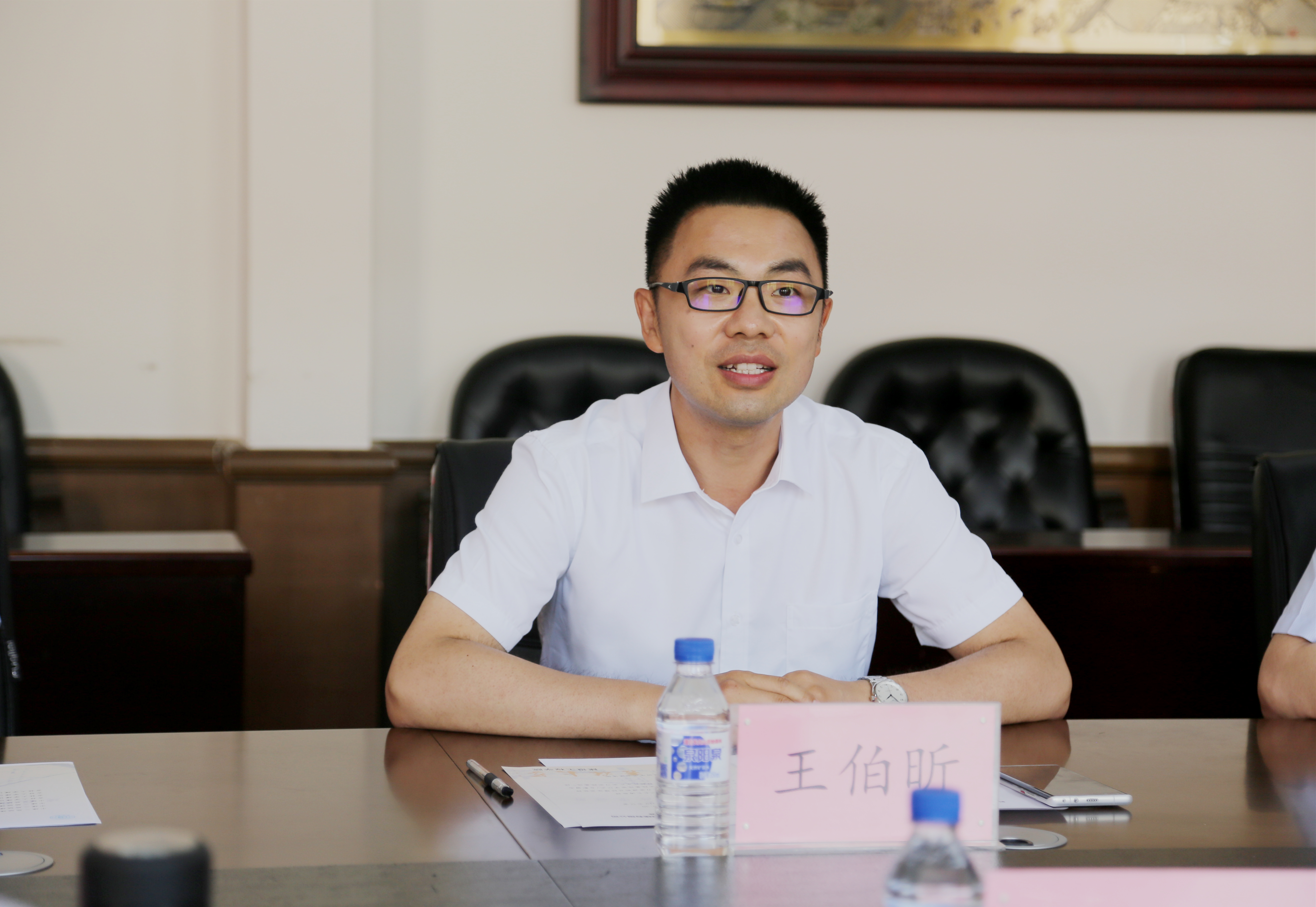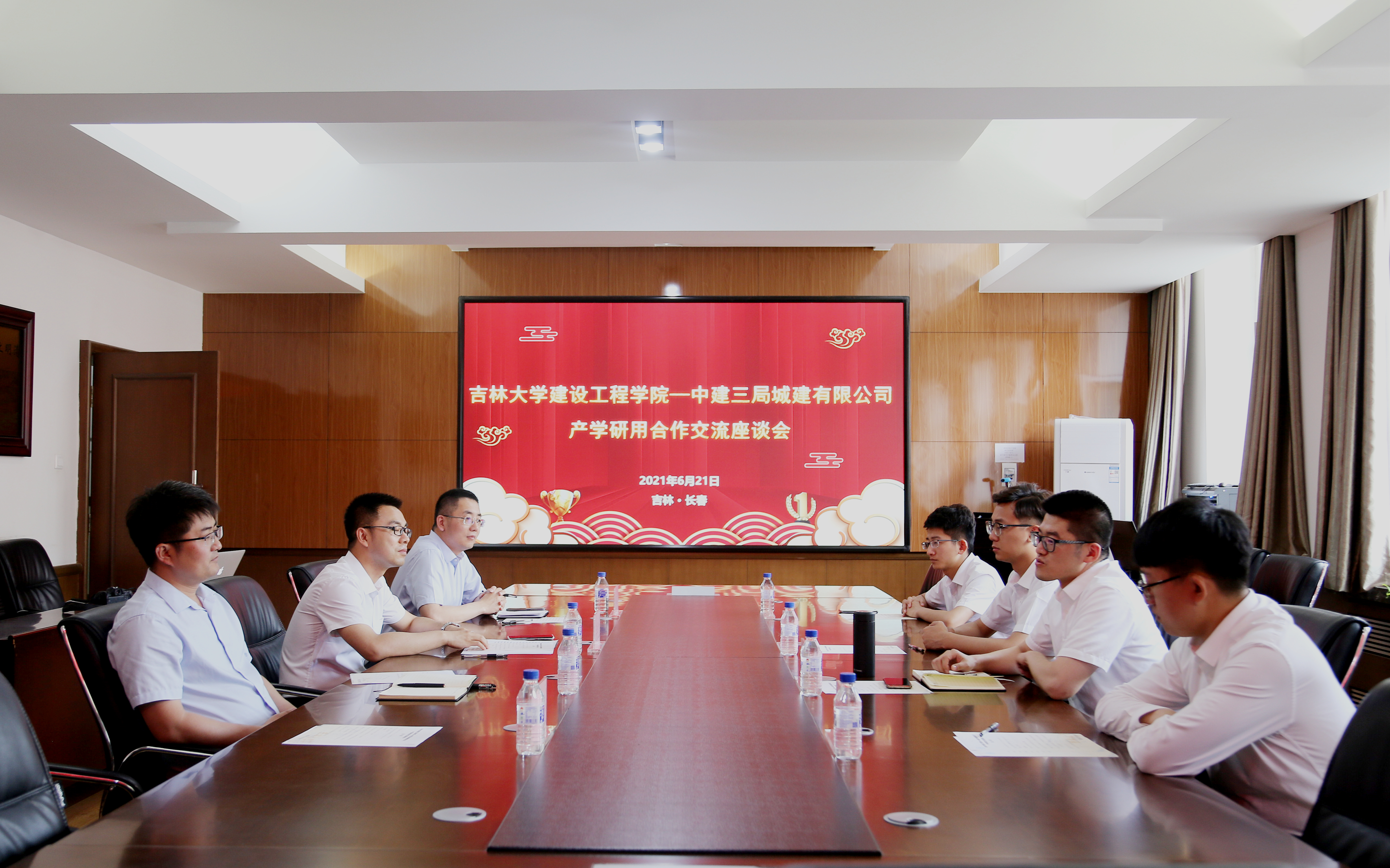 王伯昕副院长首先代表学院对徐尧经理一行的到来表示欢迎,对中建三局城建有限公司(中建铁投集团城建公司)设立吉林大学奖学金激励学子勤奋进取的爱心善举表示衷心的感谢!随后他简要介绍学院历史沿革、学科建设、师资队伍、人才培养、科学研究等基本情况,并表示双方可以充分发挥便利的同城优势,精心谋划,创新模式,不断将合作落到实处,共同培养出素质高、作风正、能力强、业务精的优秀建筑人才,为区域经济发展做出贡献。